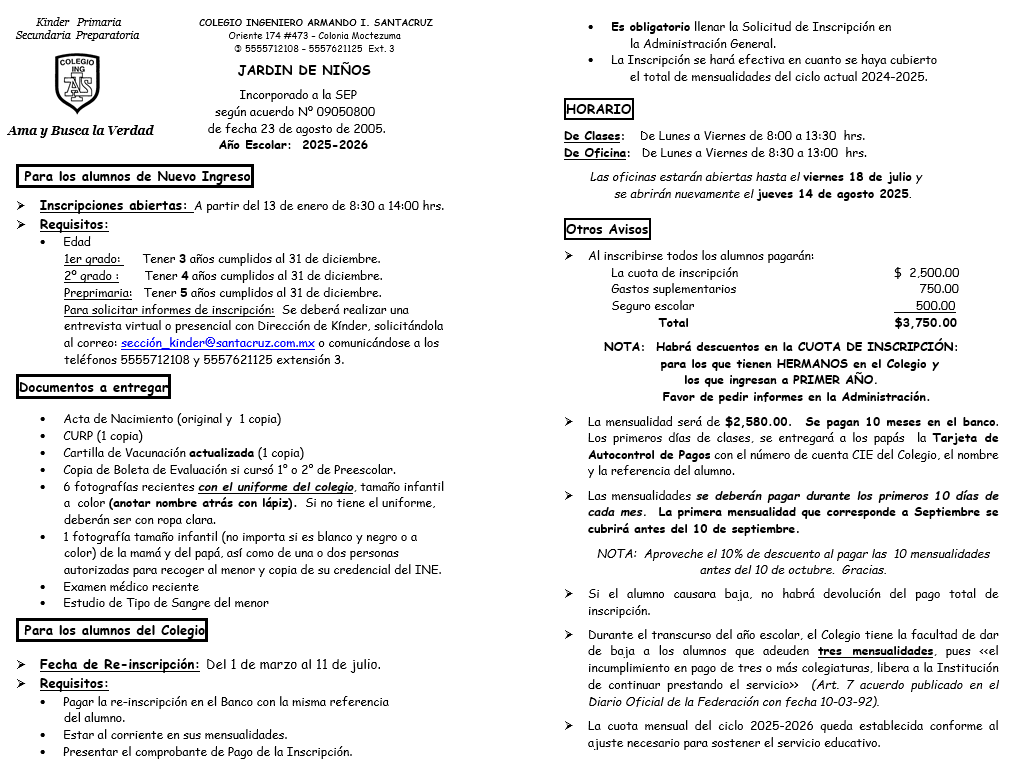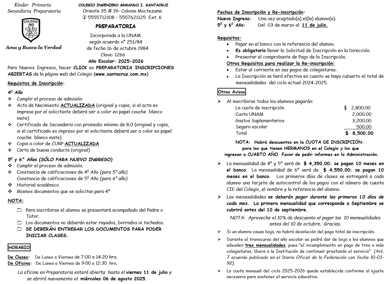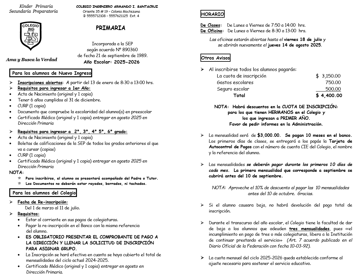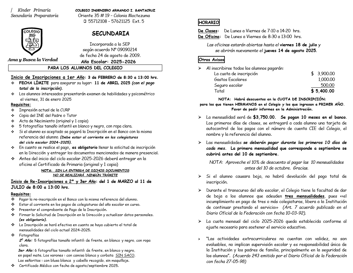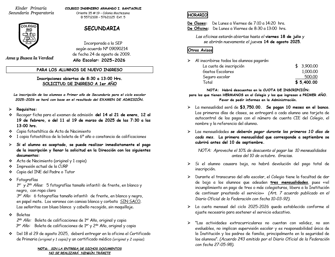 Secundaria (Para alumnos del colegio y de nuevo ingreso)